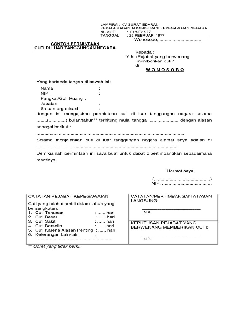 Format Permohonan Dan Ijin Cuti Diluar Tanggungan Negara Pns Pdf